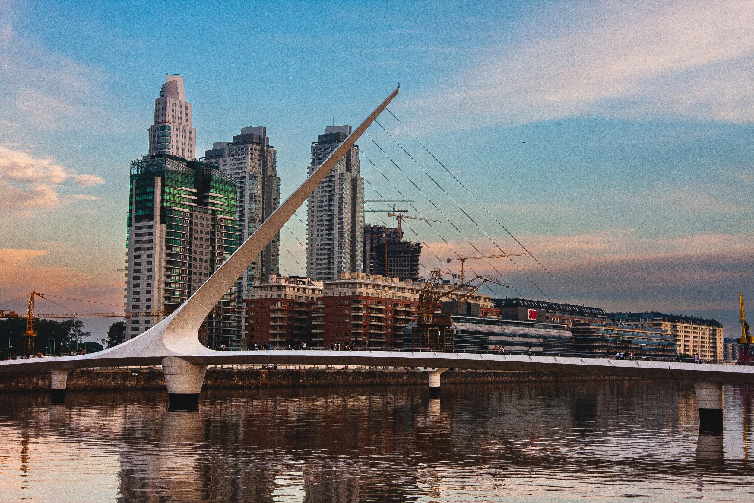 Puente de la Mujer bridge - a rotating footbridge in the commercial district of Buenos Aires. Opened in December, 2001.